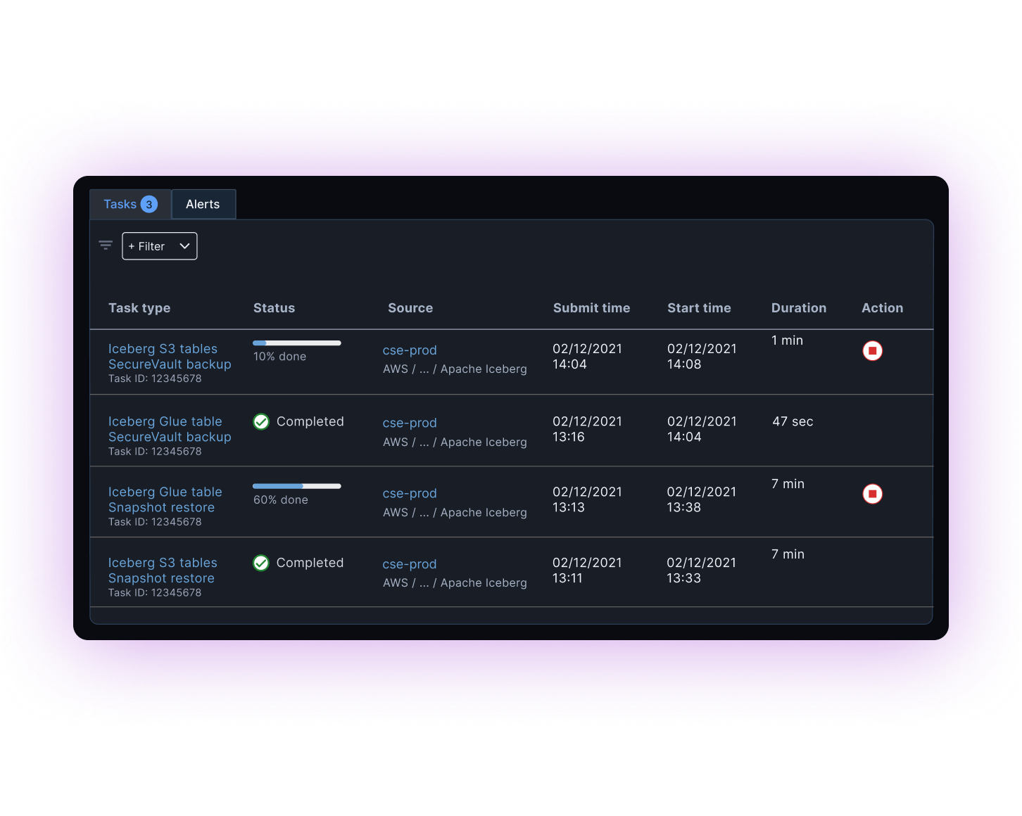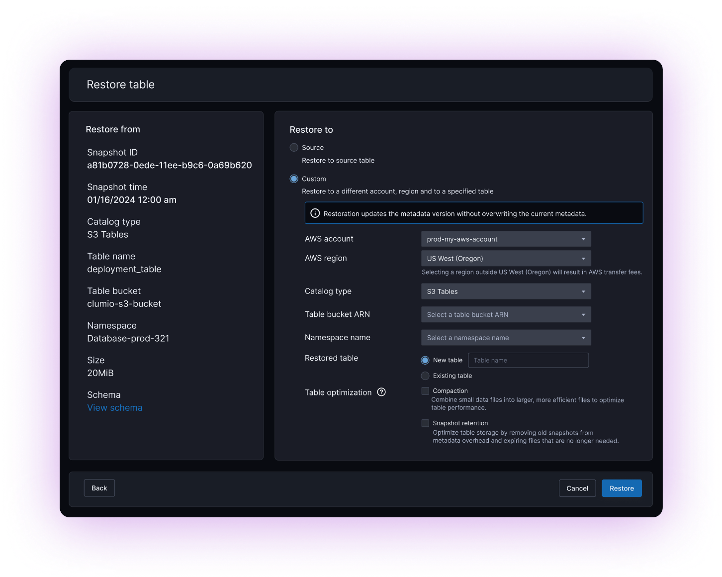 Protect Iceberg tables managed by AWS Glue and Amazon S3 Tables with Iceberg-aware resilience.