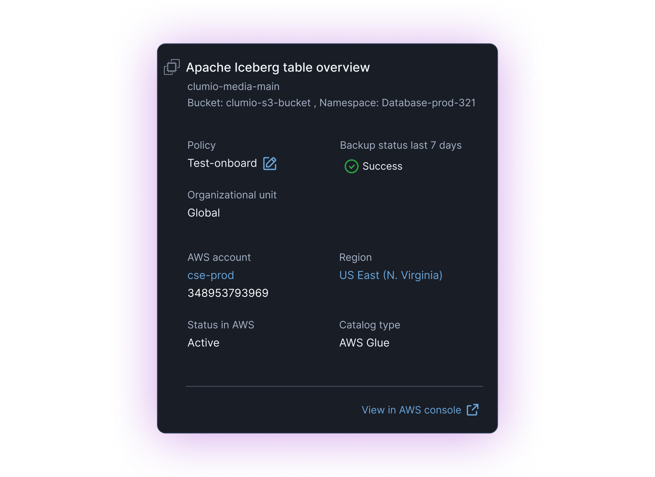 Clumio delivers fast, transactionally consistent backups for Iceberg tables in AWS Glue and Amazon S3 Tables.